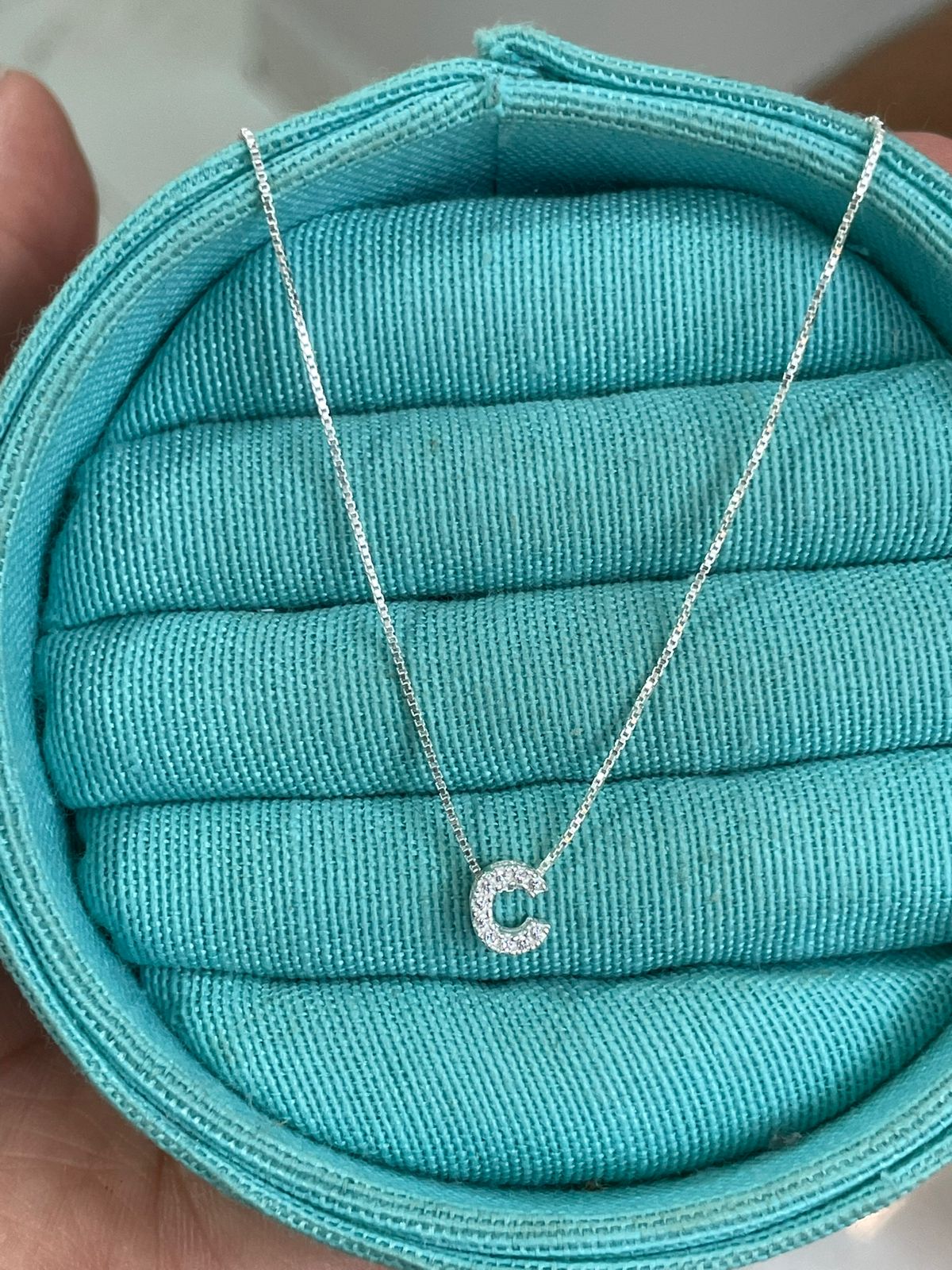 - Colar c/ pingente letra C crav e lisa