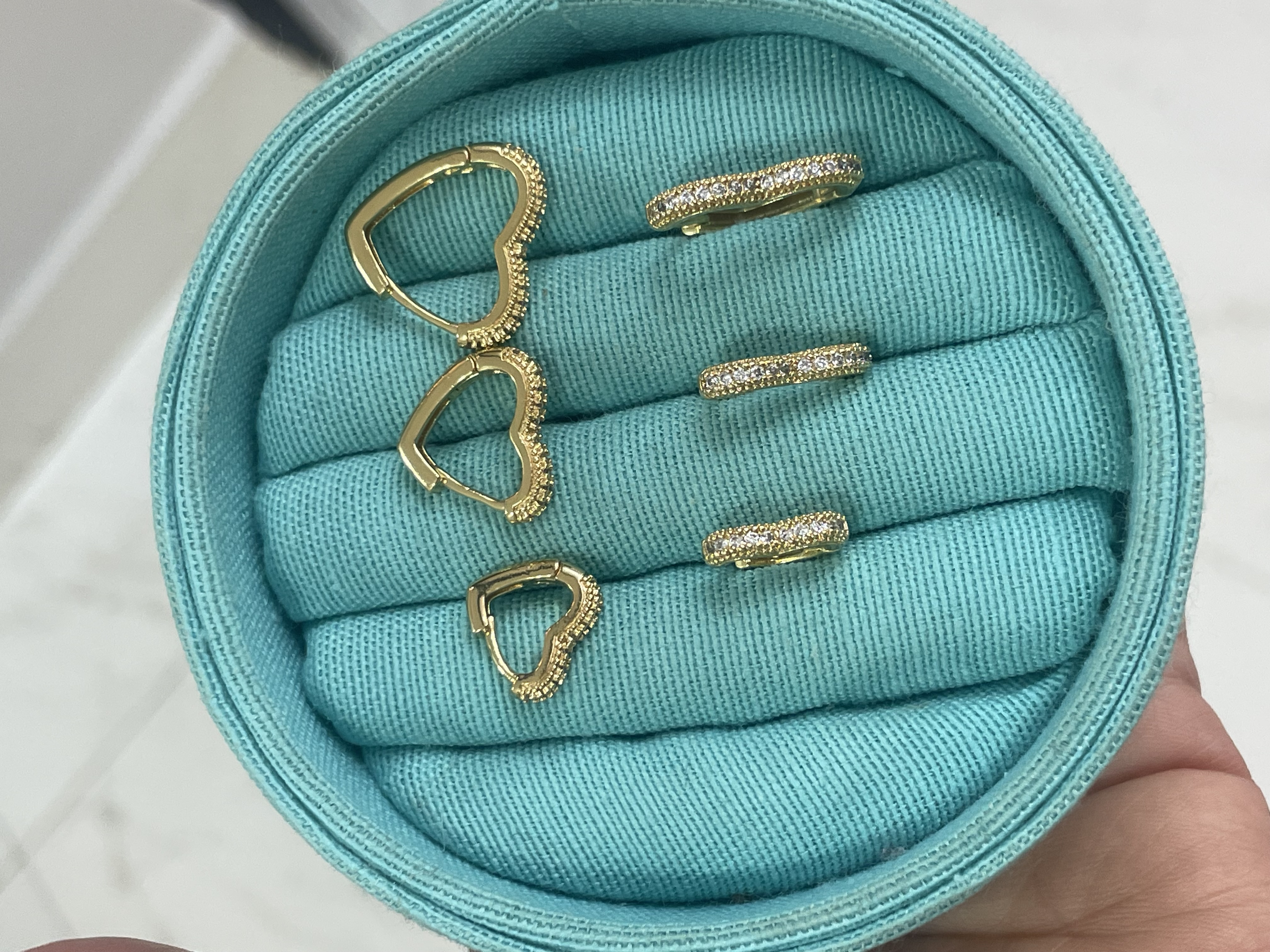 - Brinco argola de coração cravejado