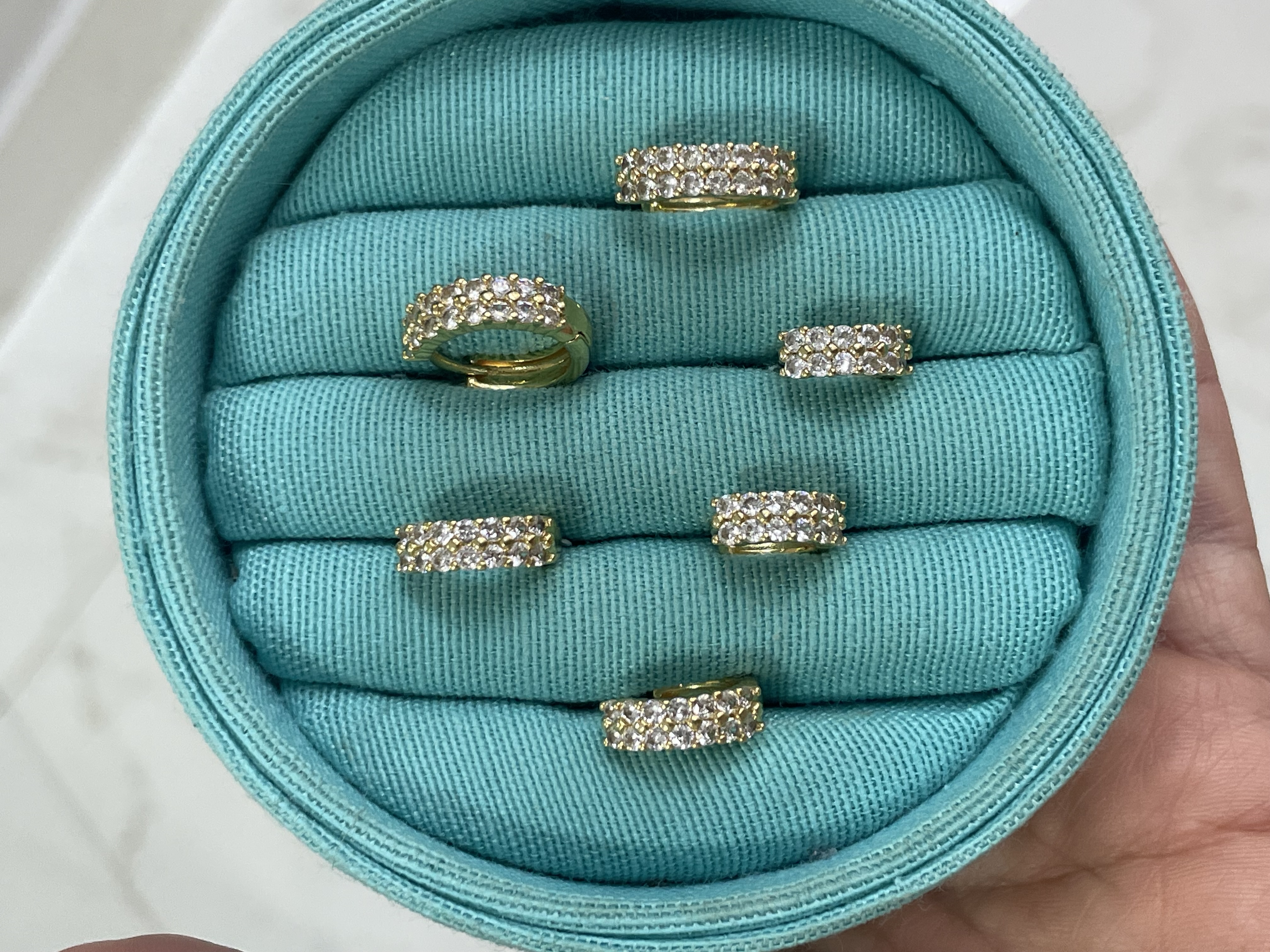 - Brinco trio de argolas dois fios cravejados