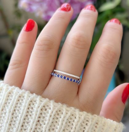 - Anel meia aliança 2 anros zirc cristal e azul